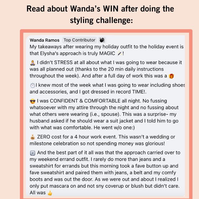 The Outfit Magic Styling Challenge is your chance to get expert guidance as you explore your wardrobe, tap into your creativity, and make the most with what you already own. By committing to this experience, you’ll gain a fresh perspective on your clothes, sparking new discoveries and inspiration that not only elevate your style but also boost your energy—transforming how you show up in the world.